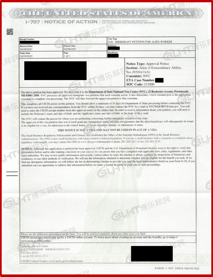 恭喜来自律师行业的L先生移民审批通过。L先生在国内有自己的律所,曾发表过数篇文章,出版过相关专业书籍,也参与评审过很多官司。为了能帮助客户成功“圆梦”,博乐团队的文案老师花费大量的时间来梳理客户的资料并挖掘客户的亮点,除了对客户的项目、出版物进行分析外,尤其是对客户在领域内的原创影响力重点挖掘,以及是否能给美国带来利益方面向移民官提供了说明和完整证据链。客户最终顺利获得移民局的批准!